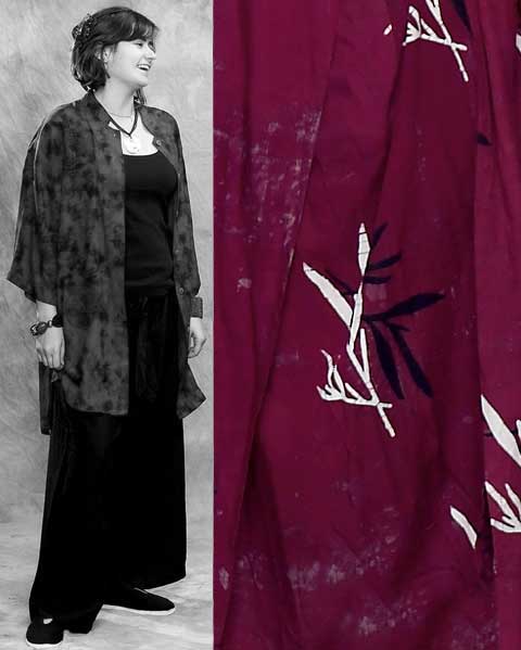 This oversize men’s style shirt comes in one large size. It has side slits and drapes down lower in the back. It is available in several batiks. 100% Rayon. Okay to machine wash in cold water. Hang to dry.