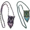Small elegant pouch made from woven beads; geometrical designs; with fringe. Size: 1.75″ x 2.25″ plus 1-2″ tapered fringe. Assorted color combinations.