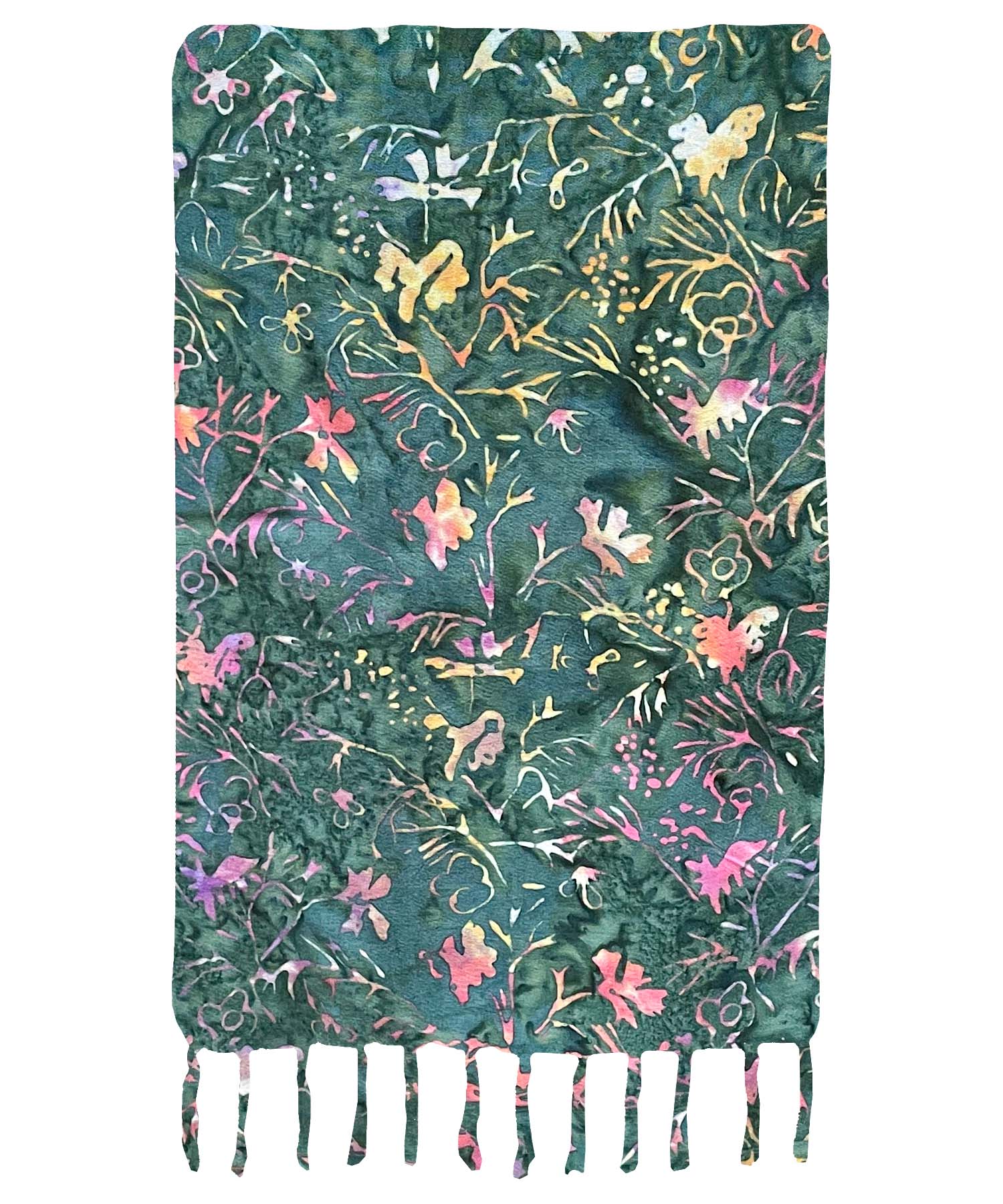 This is an artisan-made, premium batik sarong on high thread-count, clothing-weight rayon: Paynes gray batik background with falling leaves in warm tones. Premium Batik Sarong. Hand-made in Bali. Machine washable.