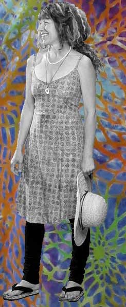 This batik spaghetti strap dress has a stretchy elastic panel across the back. It is available in the batik pictured. Please choose sizes below. 100% Rayon. Okay to machine wash in cold water. Hang to dry.