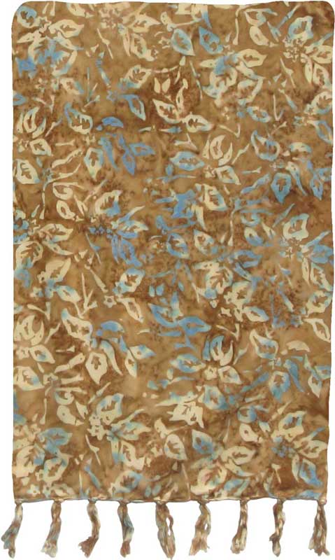 Beautifully Batiked Tan Sarong made from heavier, high thread count rayon with Floral design. Our Premium Quailty Rayon Artisan Batik Sarongs are made by Balinese experienced in the art of Batik. They are made of a heavier, higher thread count rayon and the colors are deeper and richer. Most of these sarongs are a triple process batik, as opposed to the more common single and double process batiks.